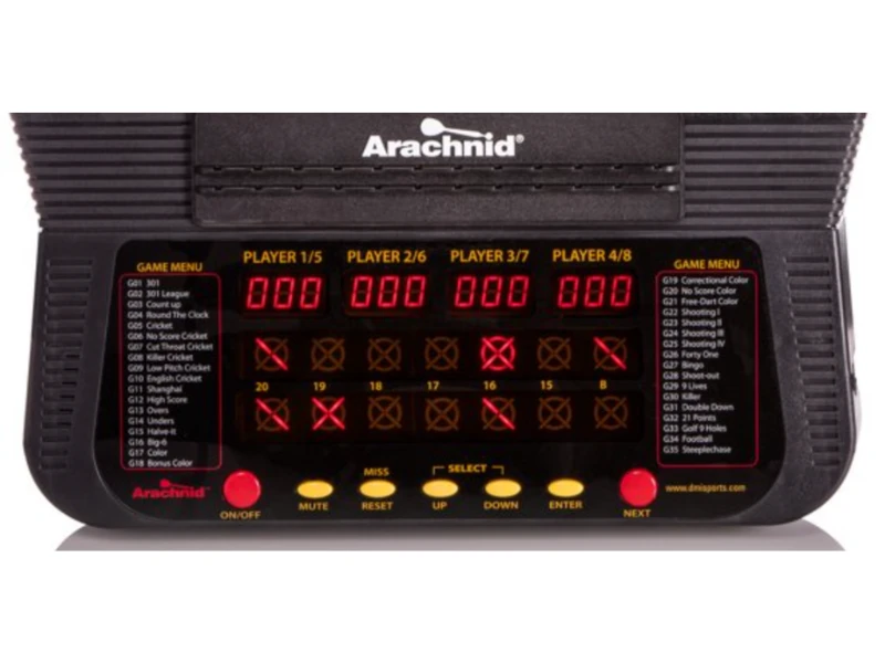 - Arachnid Cricket Pro 670 Talking Electronic Dartboard Game is everything you would expect from the name Arachnid. It is packed with 35 games, including 6 cricket games and 190 options. Two jumbo cricket displays for easy score reading. The regulation 15.5″ target area has NylonTough segments for durability and micro-thin segment dividers for higher scoring. Accessories included.