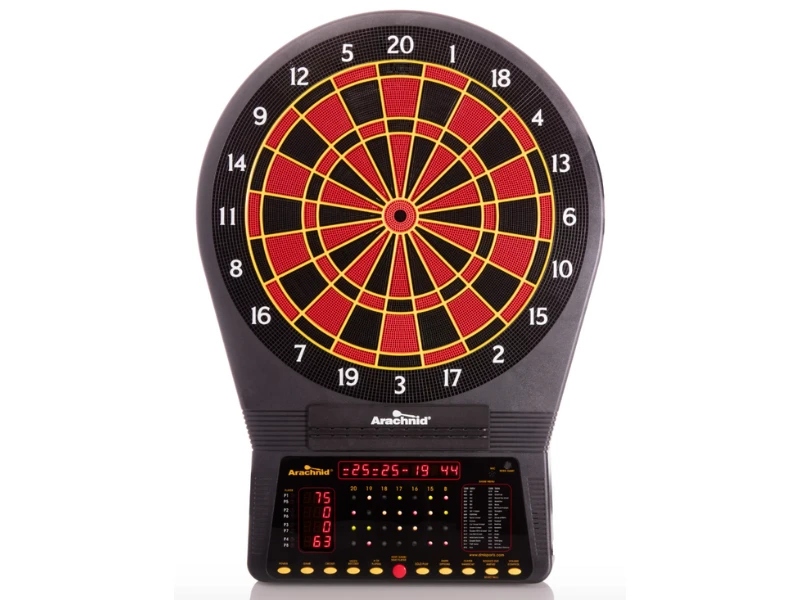 - You and your friends will have hours of fun playing this Arachnid Cricket Pro 750 Talking Electronic Dartboard with 36 games and 175 options, including 7 cricket games. High-end features include an 8 player score display with 4 player scores shown simultaneously, as well as 4 sets of cricket tri-color LED’s shown simultaneously. Record your voice and the computer calls out your own recorded name when it is your turn! Made with NylonTough segments to ensure a lifetime of fun and competition. Regulation 15.5″ target area. Accessories included.