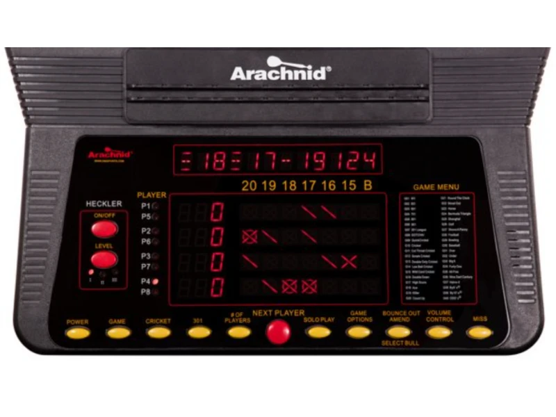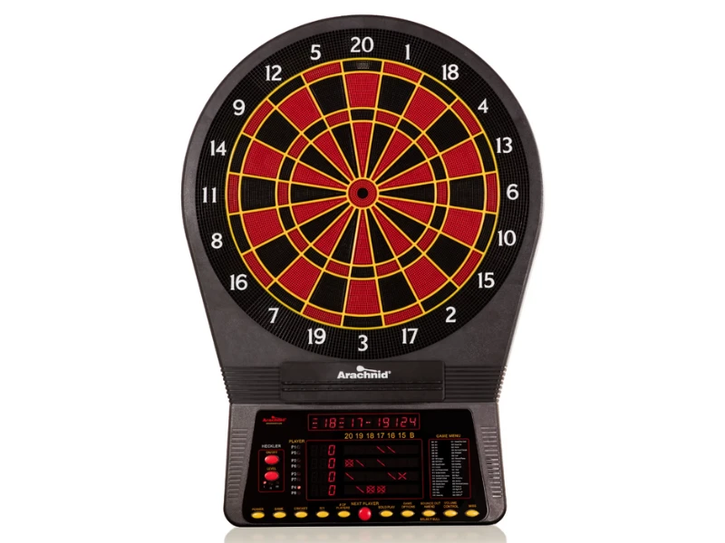 - Play like a pro with this Arachnid Cricket Pro 800 Talking Electronic Dartboard that includes all of the games and features players are looking for. Top-of-the-line features include an 8 player score display with 4 player X & O scores shown simultaneously, as well as 39 Games and 179 options including 7 cricket games. An optional 3 level “Heckler” feature adds another level of entertainment. Made with NylonTough segments to ensure a lifetime of fun and competition. Regulation 15.5″ target area. Accessories included.