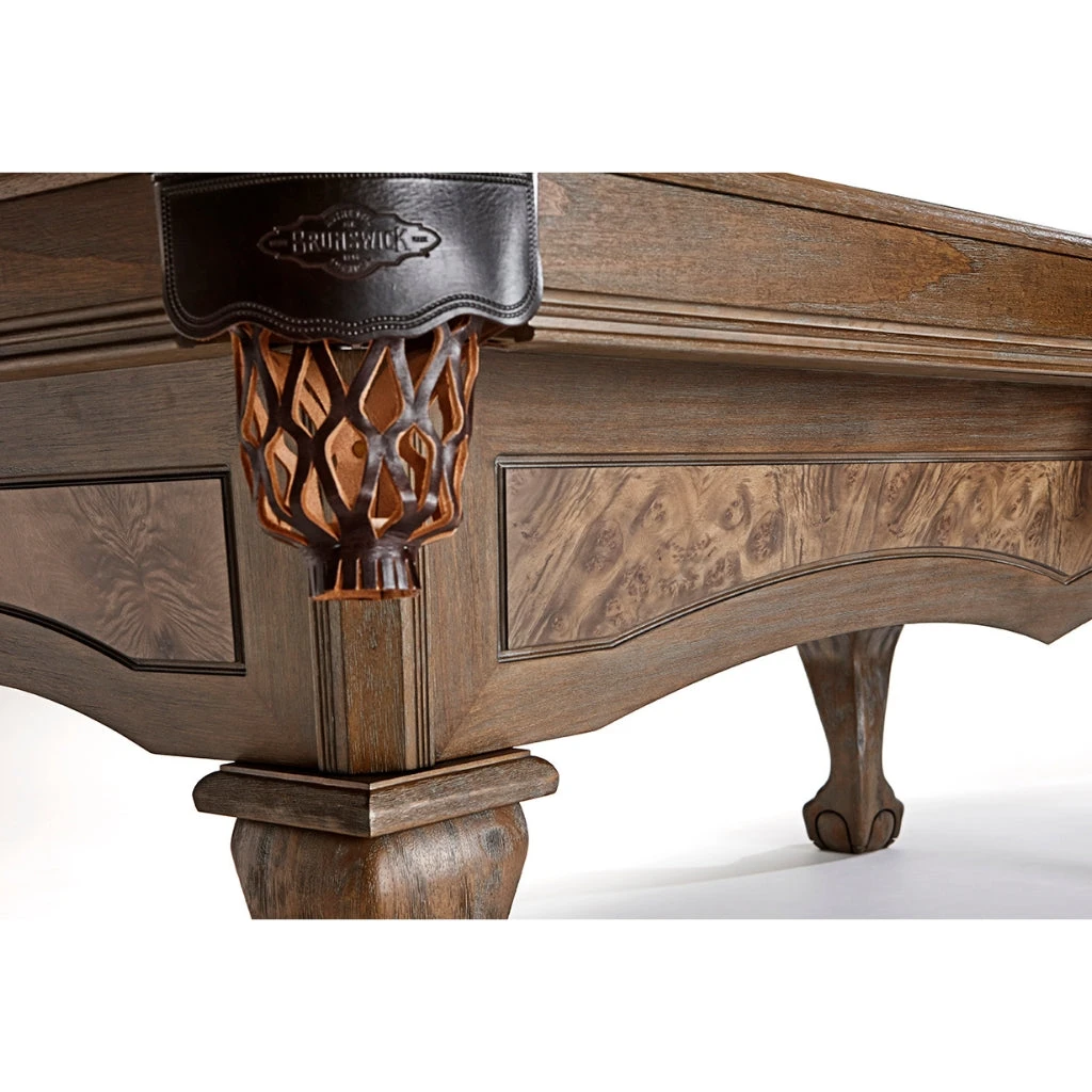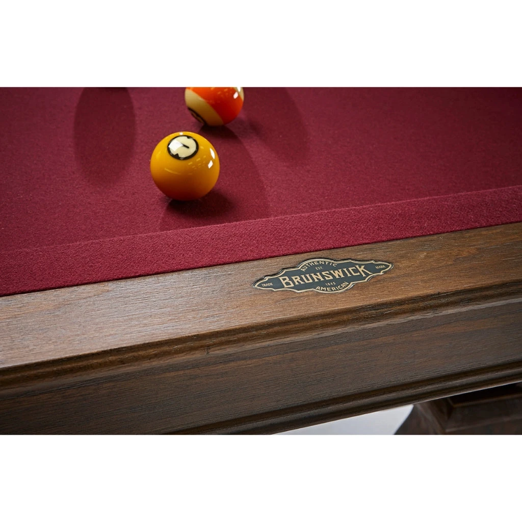 The Brunswick Billiards Brae Loch 8ft Pool Table is a classic choice for any game or family room. Built to last from durable hardwood, it features Brunswick slate accents, camphor burl inlays with a double arch, and shield-style pockets for a traditional look. The design is completed with the classic nutmeg finish and double-arched base featuring ball-and-claw legs.
