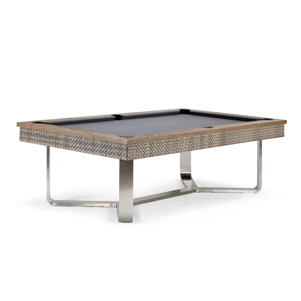 Complete your outdoor oasis with the Brunswick Billiards The Bali 8’ Outdoor Pool Table. Just like you’d expect from Brunswick Billiards, this pool table is built to handle outdoor conditions while providing excellent playability. The modern design is complete with a stainless-steel base, wicker aprons, and teak rails. This billiards table is both durable and elegant where every detail is crafted to ensure years of fun for you and your family.