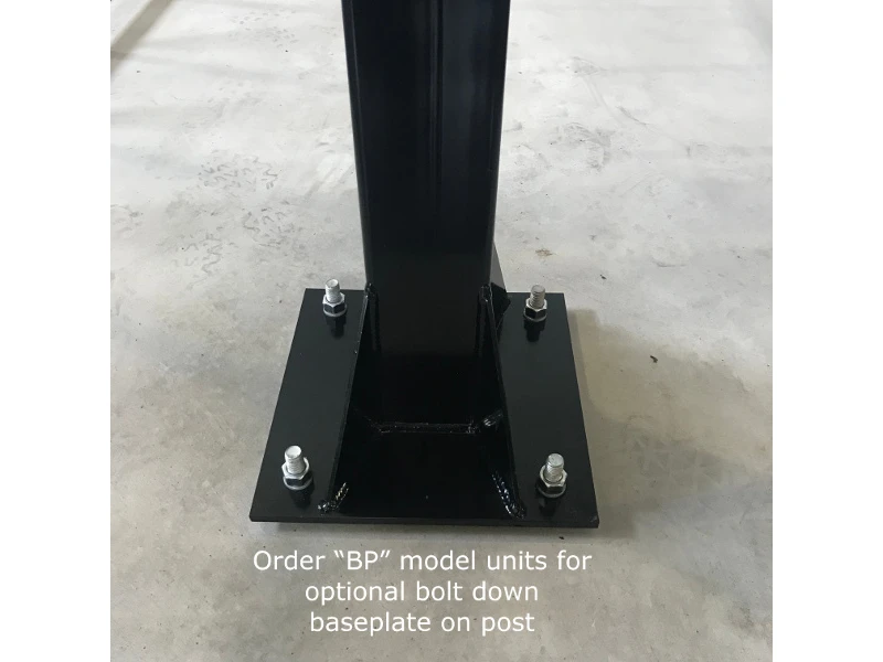 - Order “BP” model units for optional bolt down baseplate on post