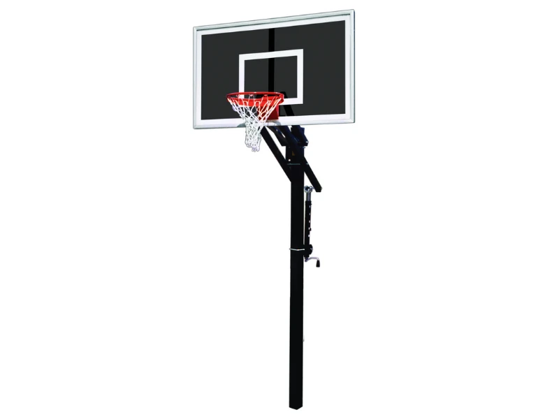 - Simple hand crank adjustment easily adjusts rim height from 10’ to 7’