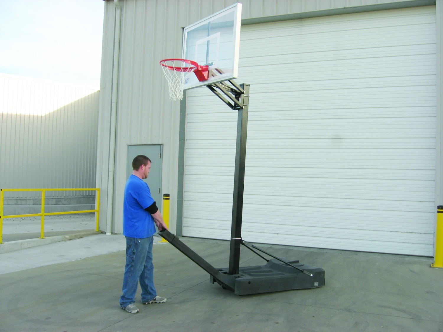 - The OmniChamp is an adjustable portable basketball goal designed to provide a higher level of performance than those commonly found at standard retail chain stores, yet it does not carry the hefty price tag associated with gymnasium level units.