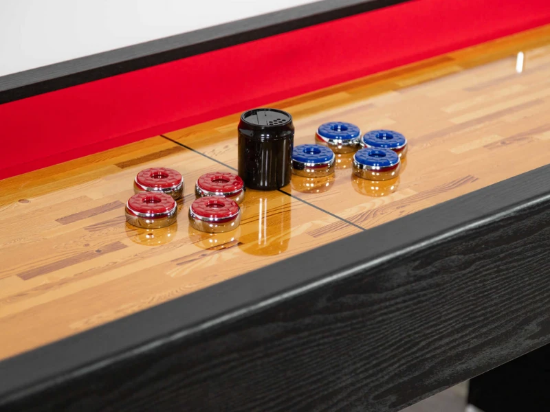 - TOURNAMENT QUALITY AT HOME – Enjoy smooth and accurate shuffleboard with the Avenger’s sleek, poly-sealed melamine surface. Padded gutters with venetian red carpeting add subtle sophistication to your game room or office.
