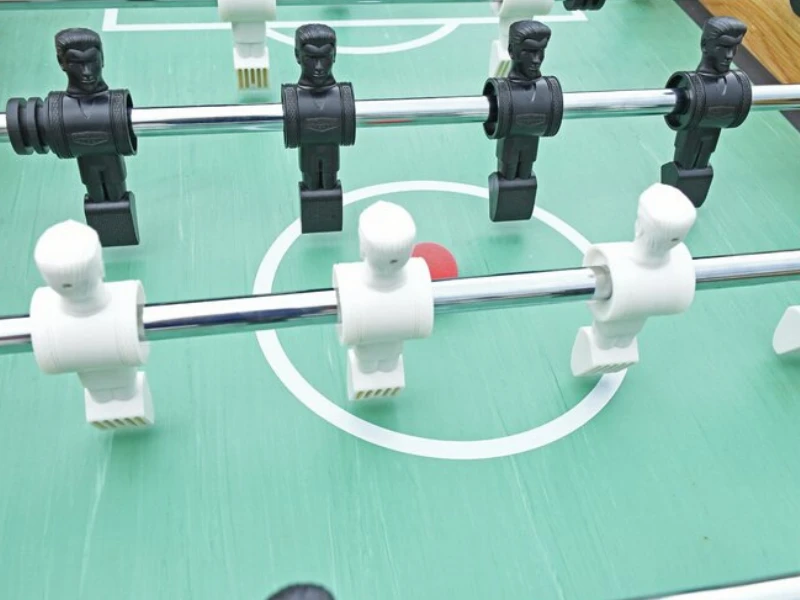 - Chrome-plated, steel rods are telescopic with EZ-spin bearings for quickness and power. A poly-sealed playing surface that’s just over a half-inch thick keeps the ball rolling cleanly and quickly, accelerating this friendly game of skill. Dual, abacus scorers keep the peace and the score, and an automatic ball return keeps the action rolling. Get ready for some exciting, non-stop foosball fun! 180-day limited warranty.