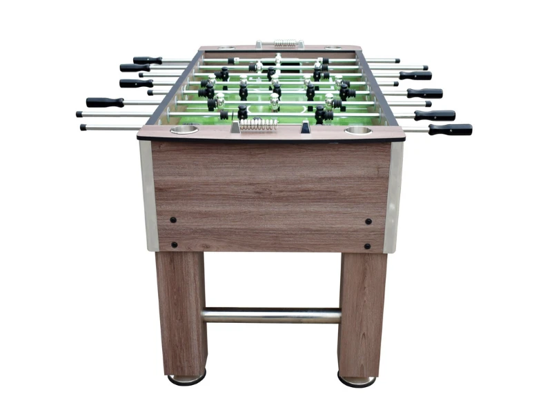 - The premium-grade Driftwood 56-in Foosball Table is the flagship of our entire Hathaway Games line of foosball tables. Made from CARB certified MDF material, this stylish gaming table has a durable exterior melamine with a beautiful driftwood finish. It features four built-in, convenient to use, stainless steel drink holders. The rugged, cross-support beams and box leg design with support bars create rock-solid table stability. Top quality features on this flagship model include raised play surface corners, solid stainless steel rods, E-Z spin bearings, and ABS counter-balanced players that keep the ball in play for continuous fast paced action. The Driftwood Foosball Table was not only designed to look spectacular in your home, it was designed to play spectacular! 180-day limited warranty.