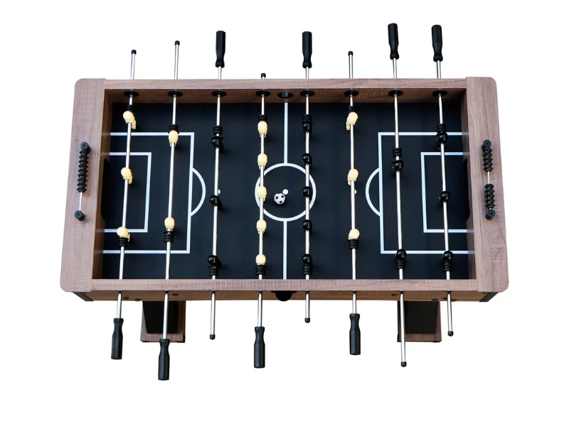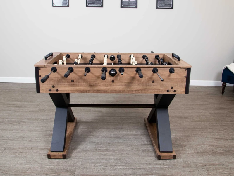 - Bring upscale, farmhouse character to your game room, den, or office with the 54-in Excalibur Foosball Table. A driftwood finish, bronze accents and a modern, X-pattern base creates a visually dynamic table. The quality components and exceptional style of this table will provide endless hours of competitive fun for your family and friends. As the competition heats up, the surface stays steady thanks to independent leg levelers and the cross-supported base. Stainless-steel rods, E-Z-spin bearings, and an automatic ball return keep the action rolling. Dual manual scorers keep the peace and the score during a fast-paced game of foosball.