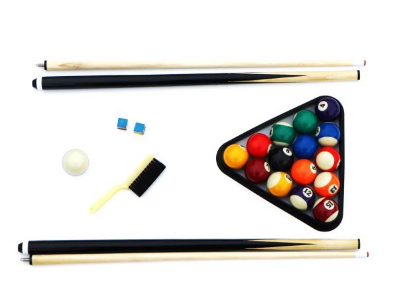 - FREE Accessories: Includes (2) 57” Wooden Billiard Cues, (1) Set of 2-1/4” Billiard Balls, (2) Pieces of Billiard Chalk, (1) ABS Billiard Triangle and (1) Table Brush