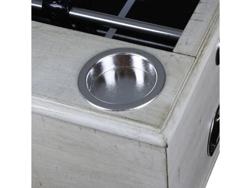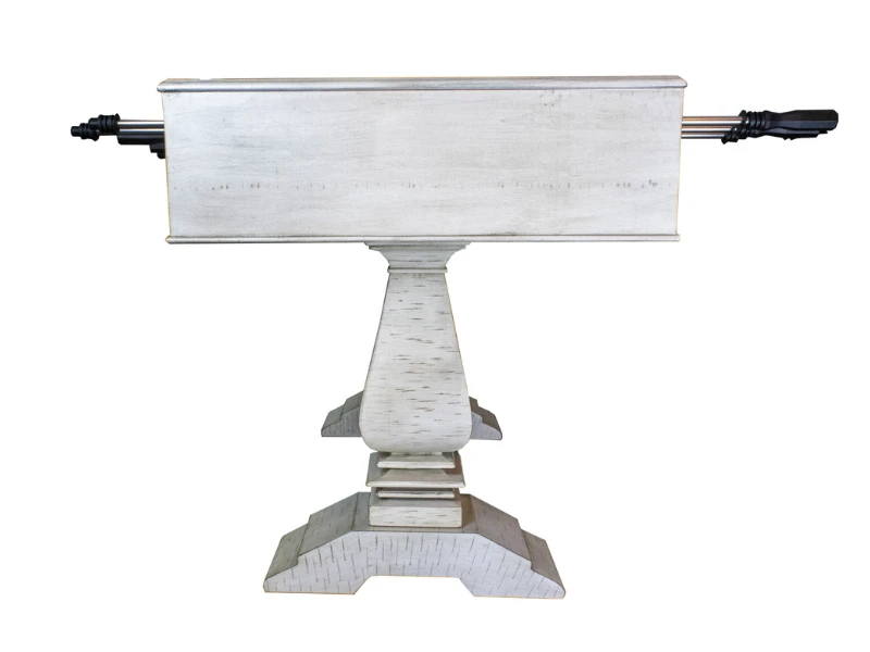 - CHARMING AND SOPHISTICATED – A birch wood cabinet with stainless steel accents creates a gorgeous, visually dynamic table. Sculpted pedestals and a driftwood finish adds a charming, farmhouse touch. A perfect centerpiece for your game room, den, or office.