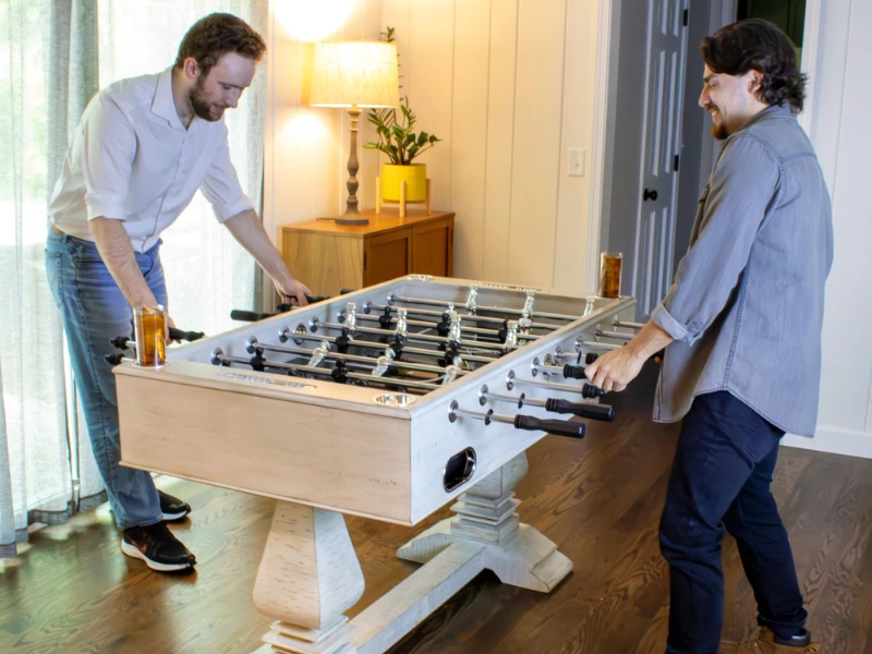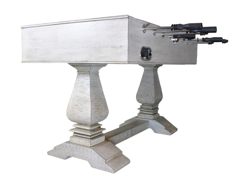 - Create an inviting and casual atmosphere in your game room with the Montecito 55-in Foosball Table. Crafted from solid birch and glazed with a multi-step, driftwood finish, this table is the perfect complement to your décor. As the competition heats up, the surface stays steady with a slick, cross-supported playfield. Stainless-steel rods, E-Z-spin bearings and automatic ball return keep the action rolling along. Manual slide counters and drink holders add to the fun atmosphere. Get ready for some exciting, non-stop foosball fun!