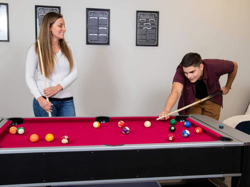 - QUIET PLAY – The pool table features rubber drop pockets and L-shaped gum rubber cushions to reduce the amount of noise produced during gameplay.