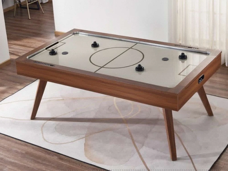 - Step into another era when you step up to challenge your playing partner at the Mid-Century Modern Air Hockey Table. The Honey Mist wood finish paired with clean lines and classic angled legs brings retro style to your hockey game. Complete to a shade with two manual inset scoring systems, adjustable leg levelers, four goalies, and pucks for optimized gameplay.