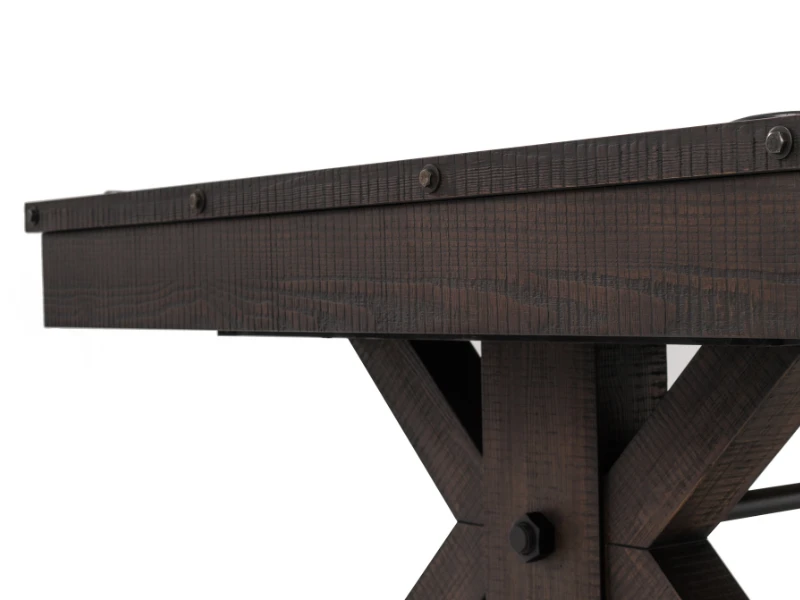 - Otis boasts two sturdy antique-inspired trestle legs, secured by a steel rod. Oversized metal boltheads give this table a cool vintage-industrial vibe. Finished in a washed black stain over solid Douglas Fir.