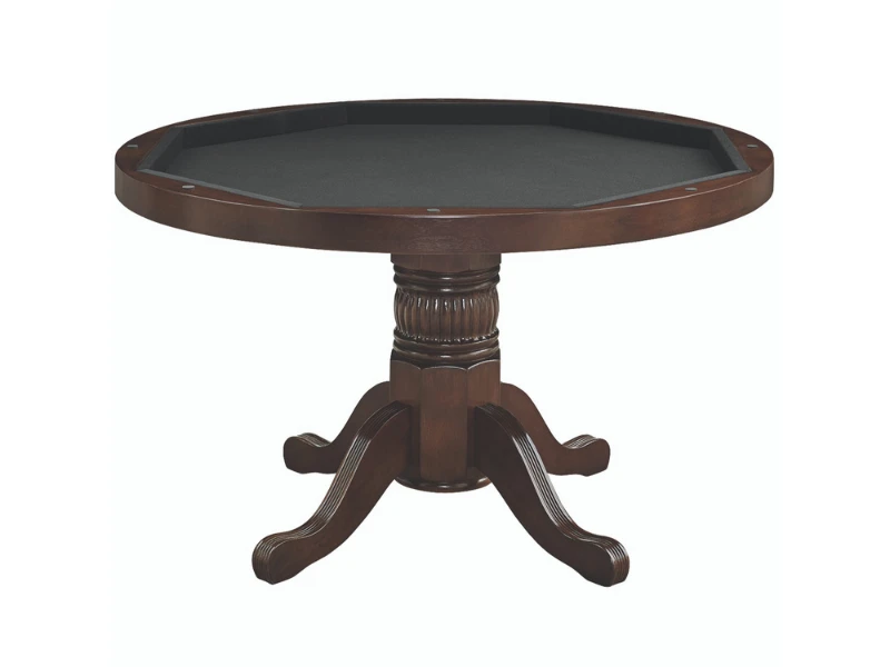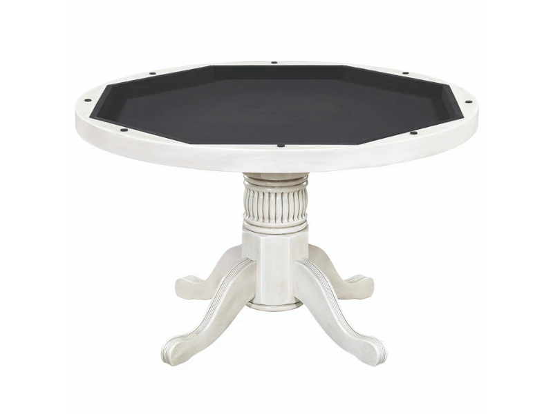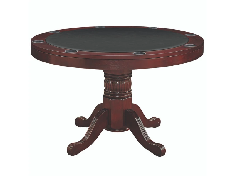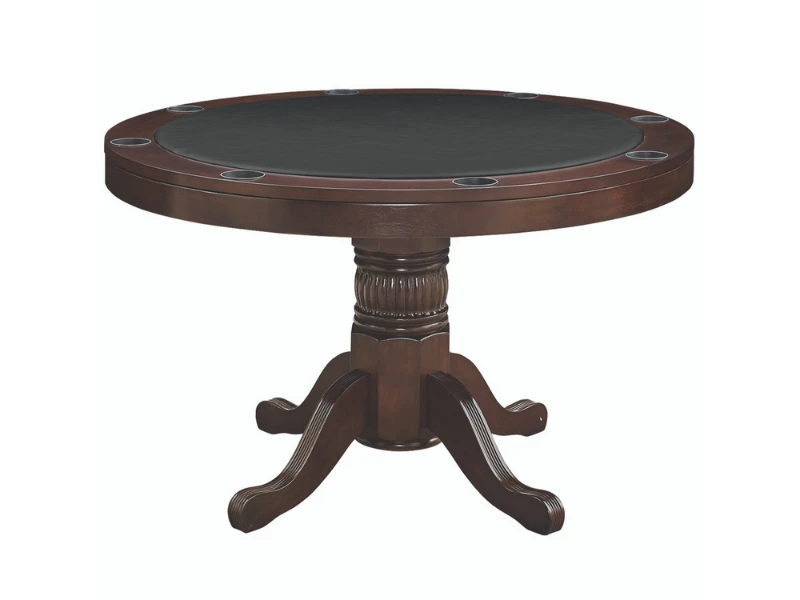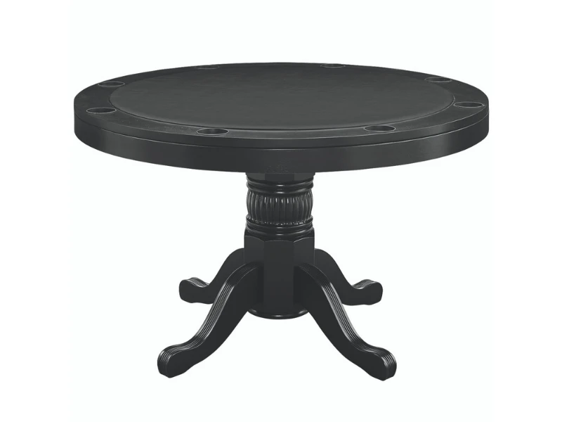 - Perfect for everything from Blackjack to Texas Hold ‘Em, this round gaming table boasts beautiful solid wood construction with a padded vinyl playing surface.
