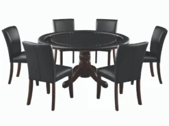 - A gorgeous game table. Solid wood construction with a padded vinyl playing surface. Your cards will elegantly slide across this surface, or you can flip the top for a perfect dining top option.