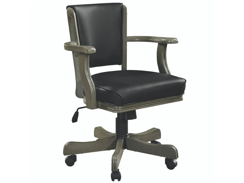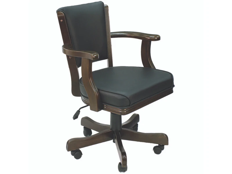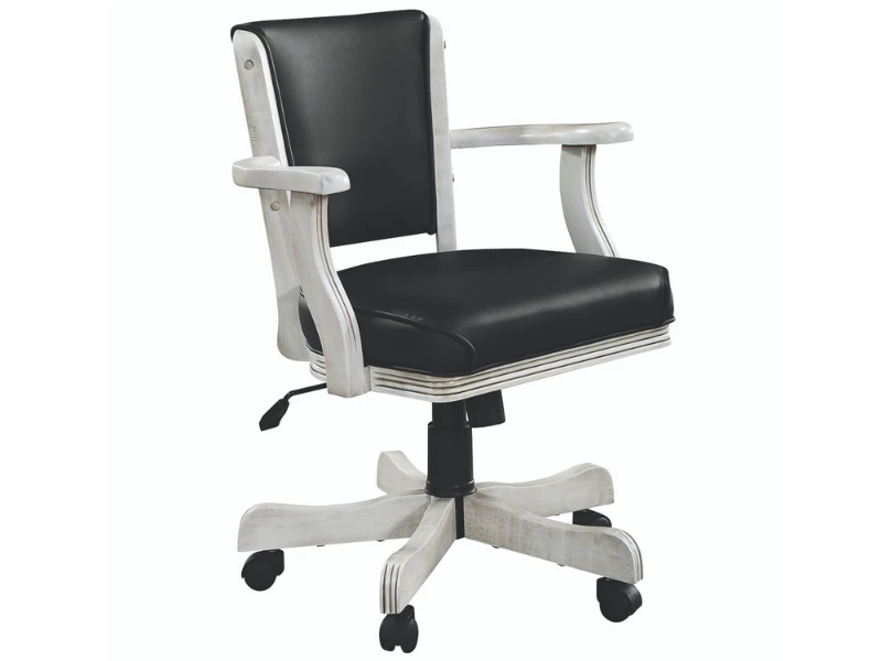 - A rolling five-point base with caster wheels adds mobility to the exceptional comfort of this premium antique white solid wood swivel game chair with a padded seat.