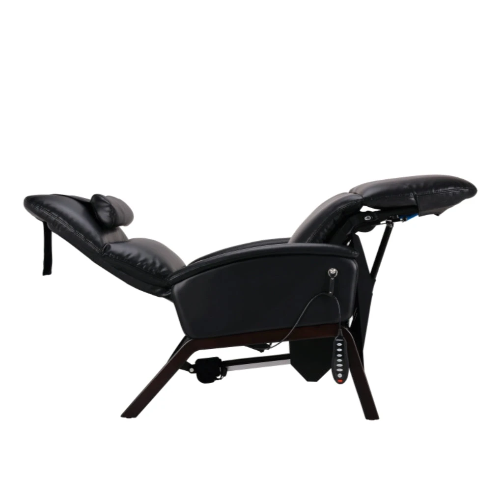 - Our entry-level zero gravity recliner has all of the benefits of zero gravity, with synthetic hyde, hand-carved wood base, lumbar vibration massage and heat, relaxation, self-care, quicker recovery, and back health are here.