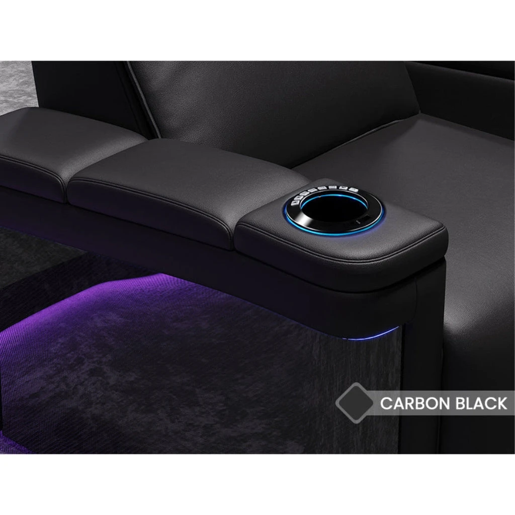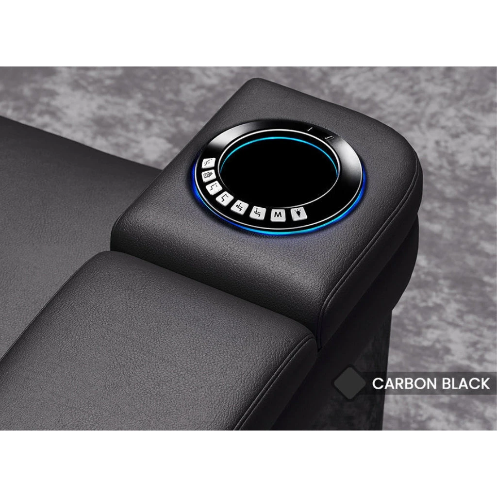 The Valencia Monza Carbon Fiber Home Theater Seating is built for those who want the best in comfort and style. Its sleek design with carbon fiber details adds a modern touch to your space while offering lasting durability. Covered in soft, high-quality Premium Matte Semi-Aniline 15000 Nappa Leather, the Monza gives you luxurious comfort. With motorized features for easy adjustments and colorful RGB LED lighting, it transforms your home theater into a relaxing, high-end experience.