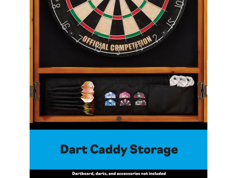 - Built-in storage compartment incorporated within the cabinet can hold all of your darts and extra flights.