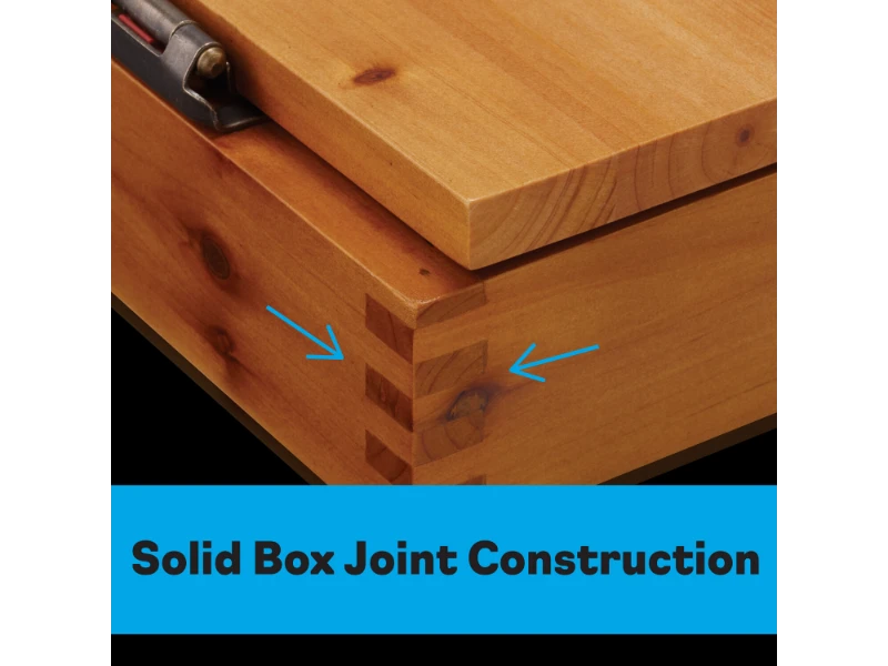 - Solidly constructed from solid pine with box joints and brushed nickel hinges.